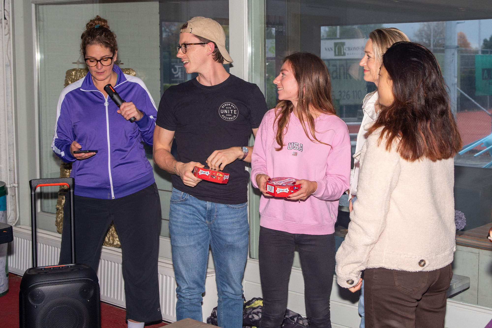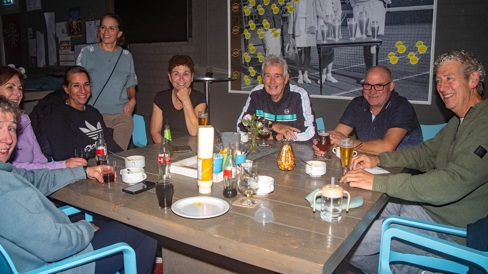 Zo’n 35 mensen kwamen ondanks het snertweer langs voor een gezellige middag. Er werd getennist, gepadeld en daarbij had Marleen een leuke quiz georganiseerd. Uiteraard onder het genot van een kop rijkgevulde snert.